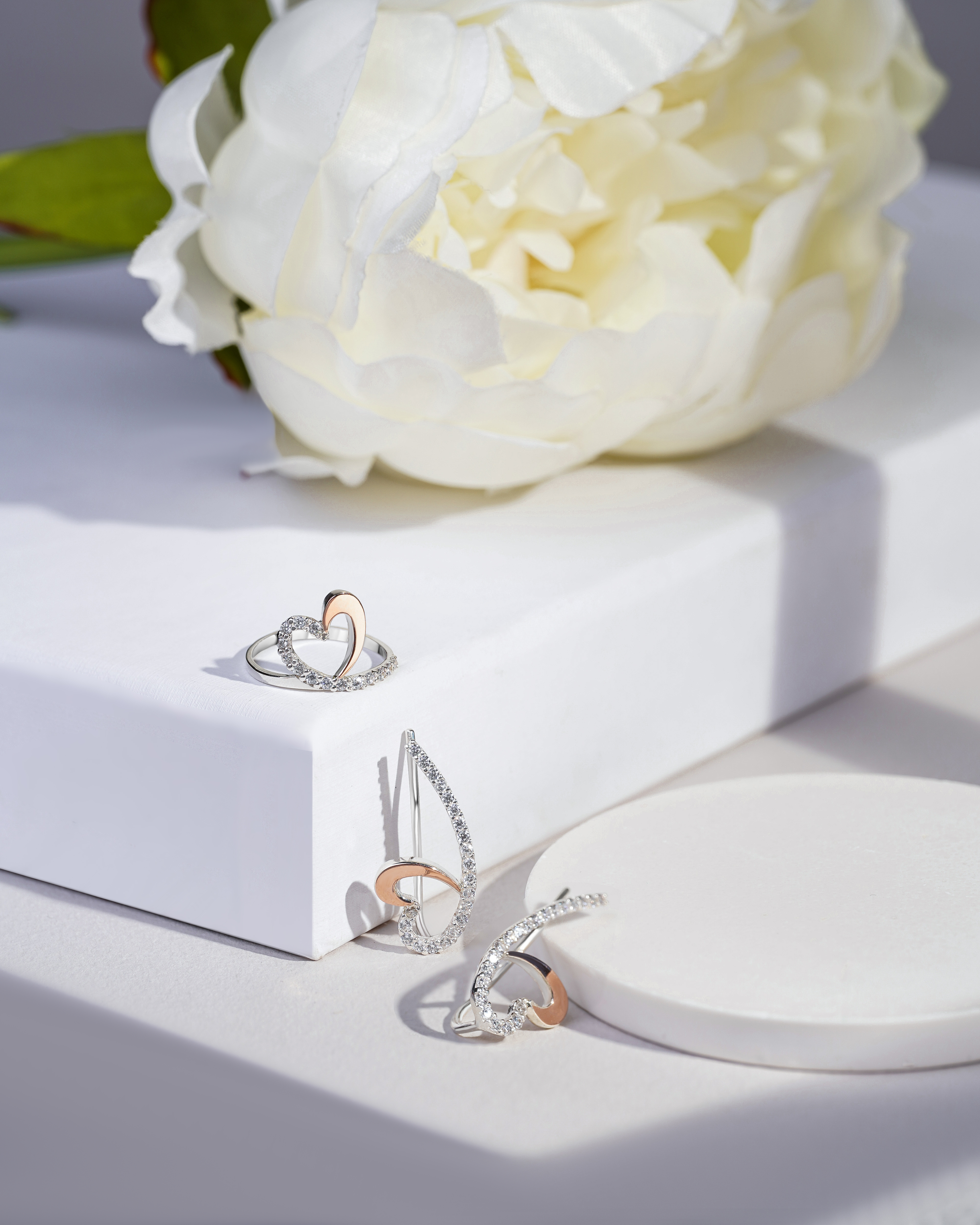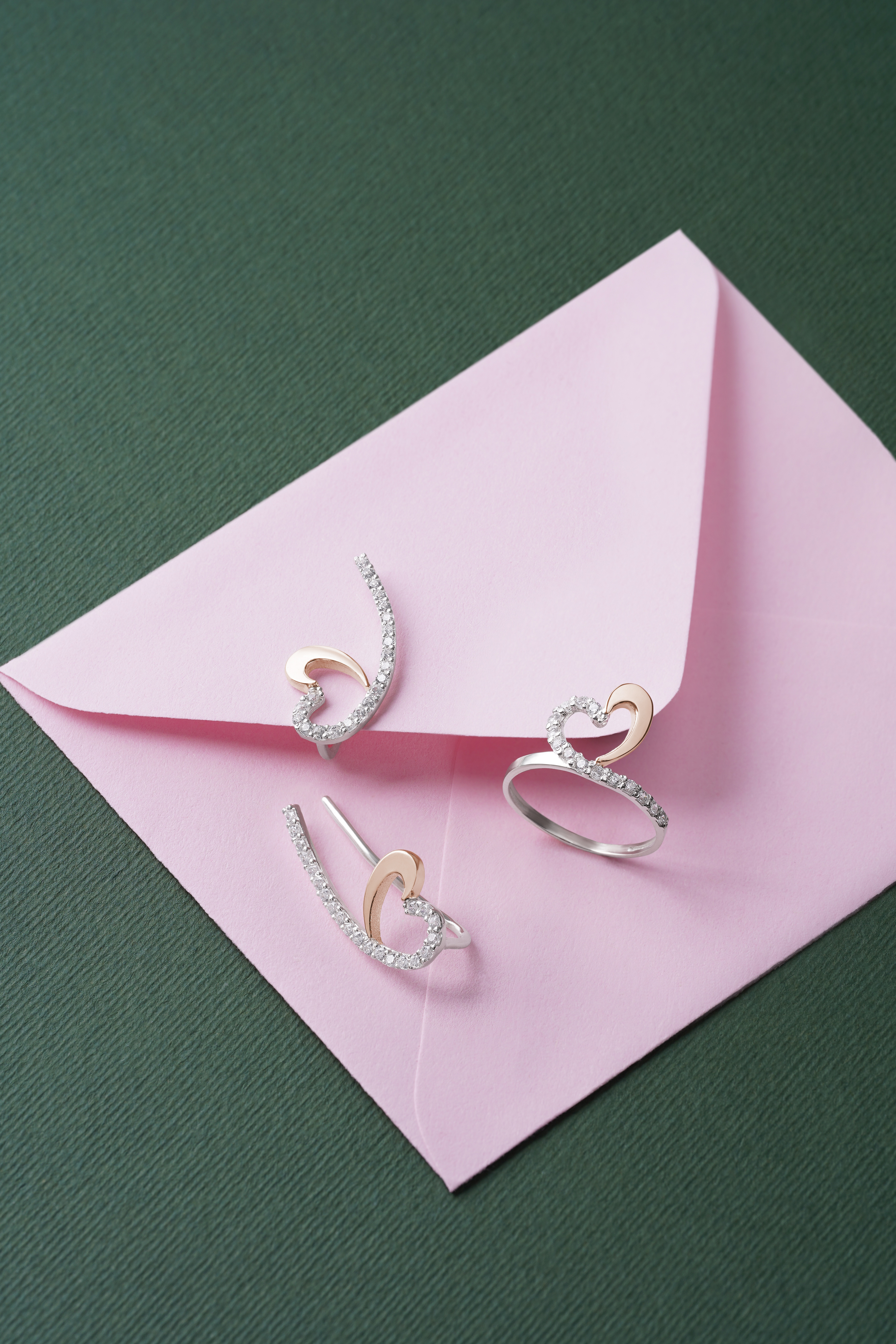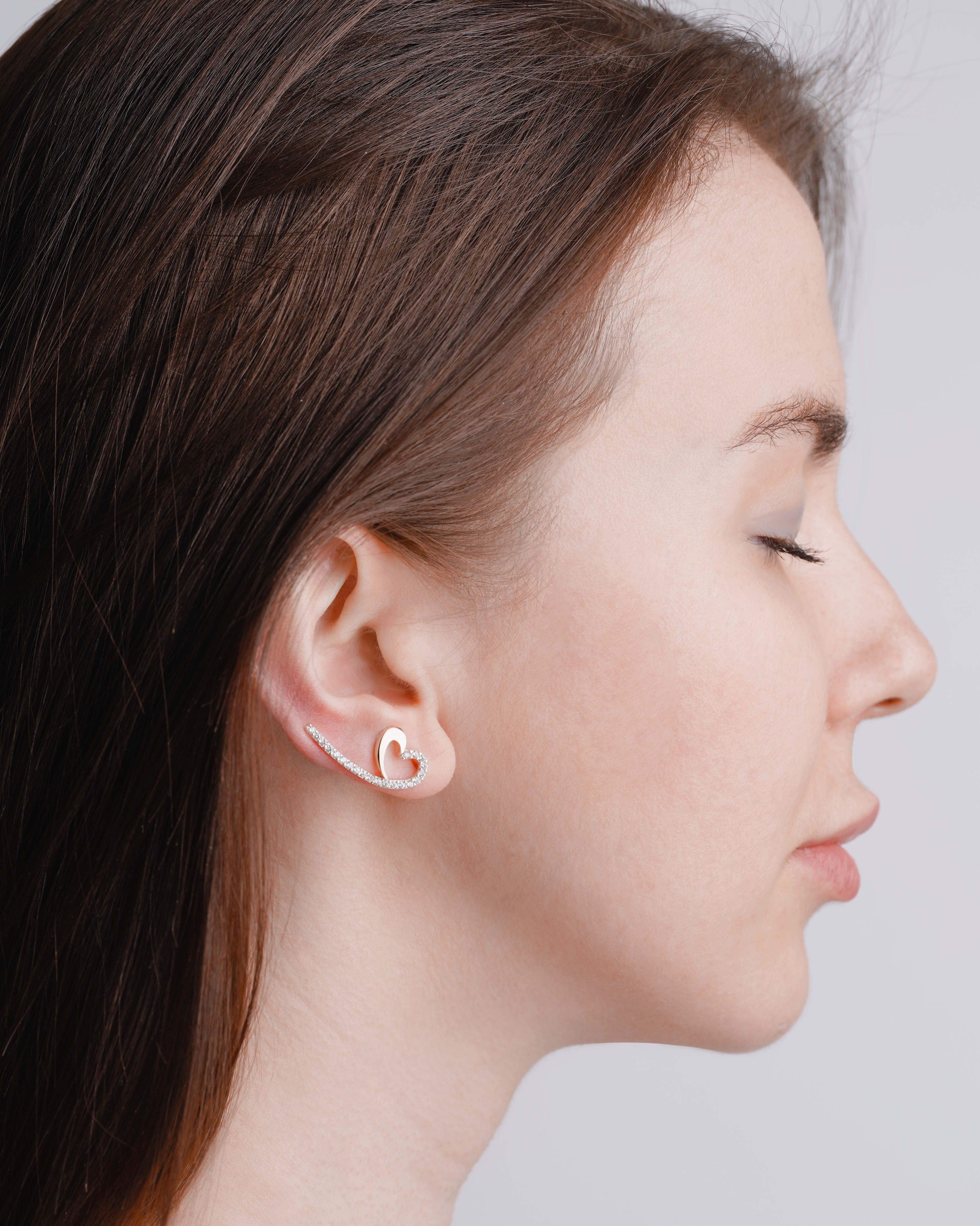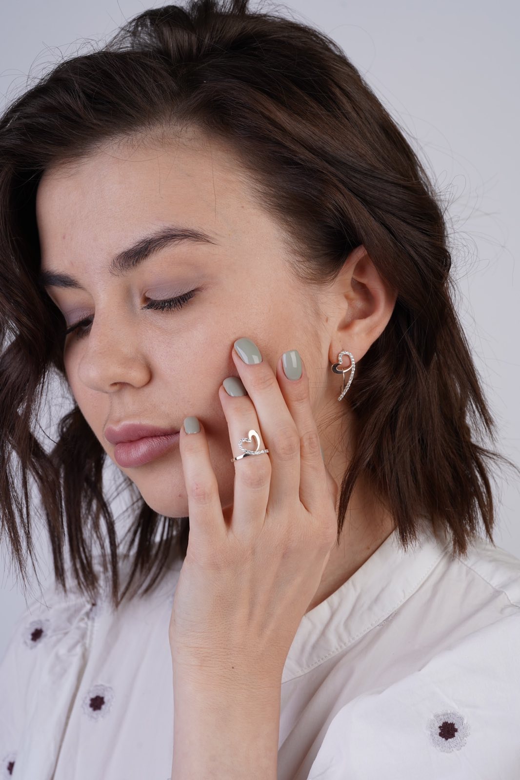 Тендітна срібна каблучка у формі серденька підкреслість ніжність ваших пальчиків. А сережки, незвичної форми, додадуть ефектності образу. Обирайте як само ви носитимете сережки, адже іх можно розташувати як донизу застібкою, так і по мочці вушка.